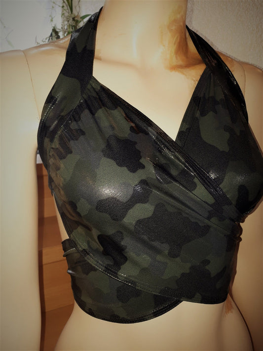 Unikat Wickeltop Bandage Top Wickel Bluse Bikini Bandeau Badeanzugstoff Lycra Camouflage wetlook Stretch Gr 36-44