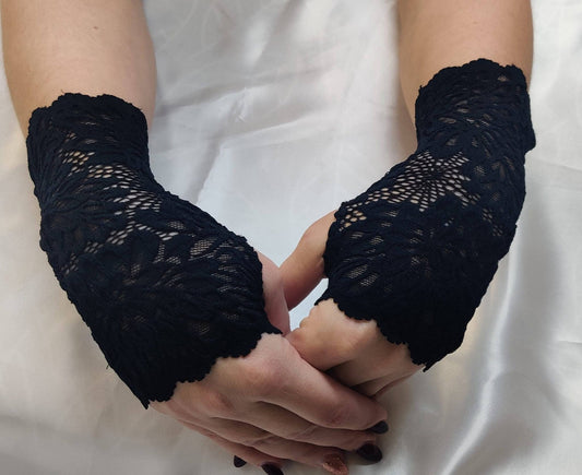 Stulpen Pulswärmer Spitze elastisch weich transparent Damen Hand Daumenloch
