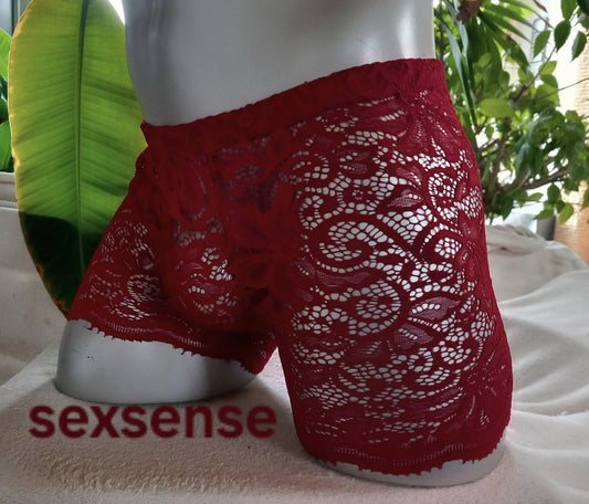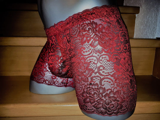 Boxershorts Spitze dunkelrot elastisch transparent enganliegend sexy