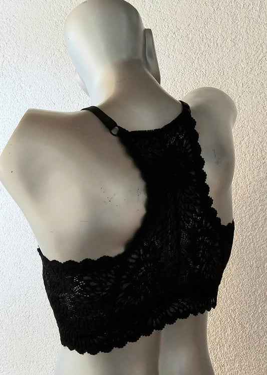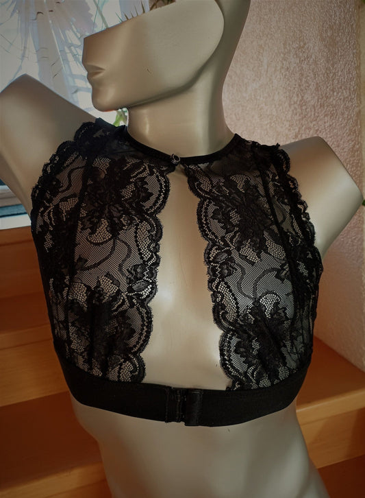 Bustier BH 2-teiliges Top-Shirt Sissy en femme aus elastische schwarzer Spitze