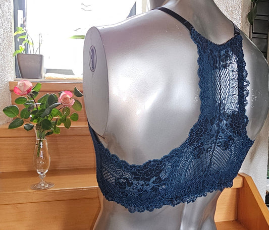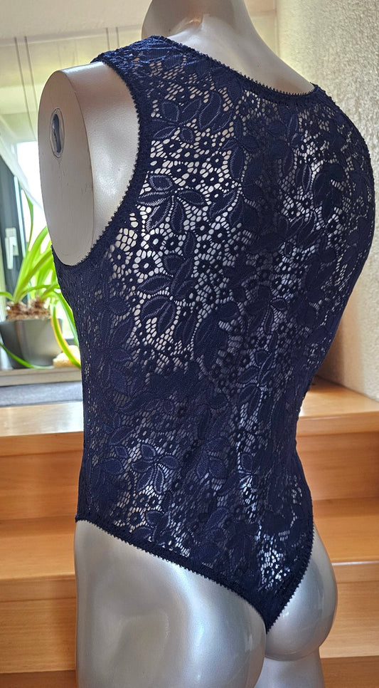 Herren String- Body aus elastischer dunkelblauer Spitze sexy transparent