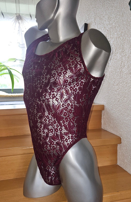 Herren String-Body Unterwäsche elastisch bordeaux elastische Spitze transparent