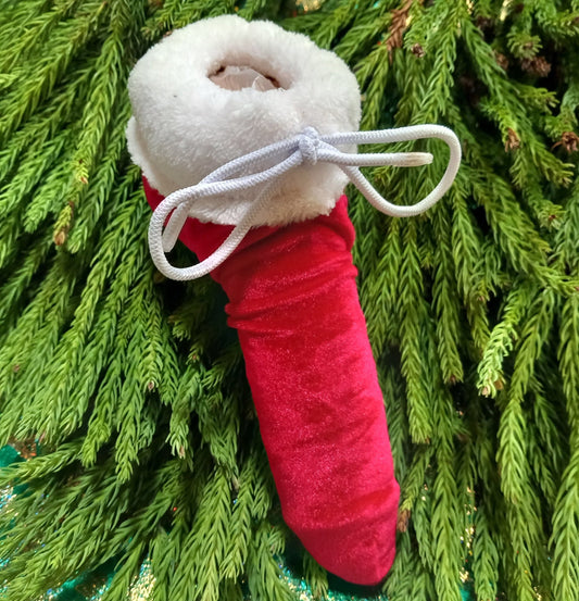 Penissocke Lümmeltüte Juwelensäckchen roter Samt mit silber Hologramm Paisley Ornmente Onesleeve Willy-Pyjama