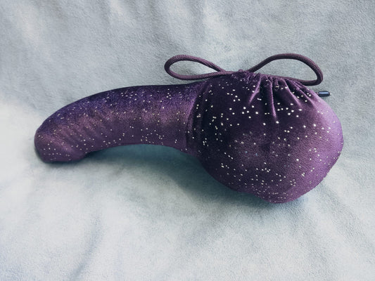 Penissocke, Lümmeltüte, Juwelensäckchen, lila Lycra Samt mit Silber Flitter Sackhalter Willy Pyjama