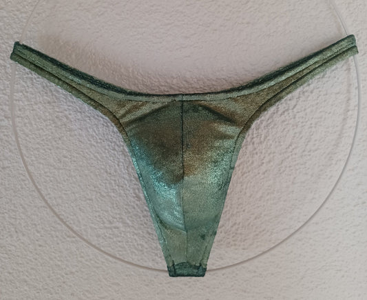 Herren String Tanga Unterwäsche und Badehose Samt grün metallic Unikat Gr. M