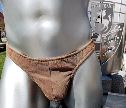 Lederimitat Herren String Unterwäsche Badehose Suede Waschleder in rehbraun Unikat