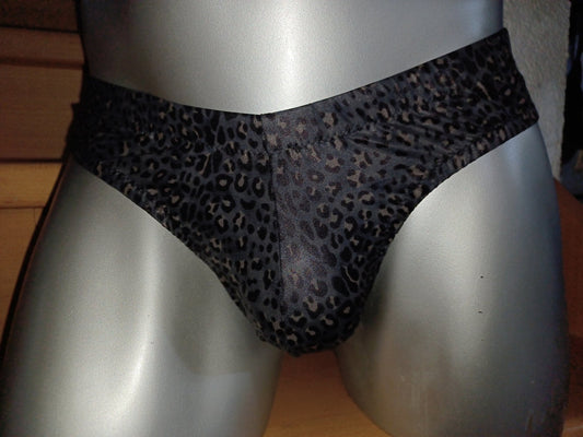 Hipster-String elastisches Lycra Leoprint hauchzart schwarz/grau
