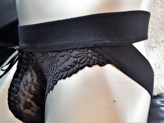 Corsagen Thong weiß elastische Spitze Sissy Unikat Suspensorium geschnürt