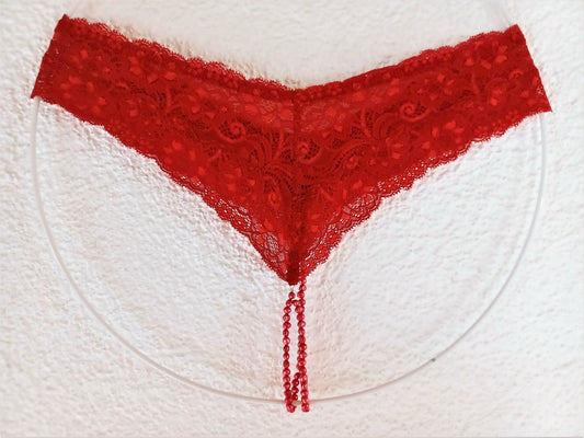Damen Perlen String rot elastische Spitze mit echte Süßwasser-Perlen Dessous sexy Lingerie Slip