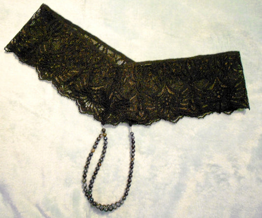 Sexy Damen Perlenstring aus Schwarzer elastischer Spitze echten schwarze Perlmutt-Perlen