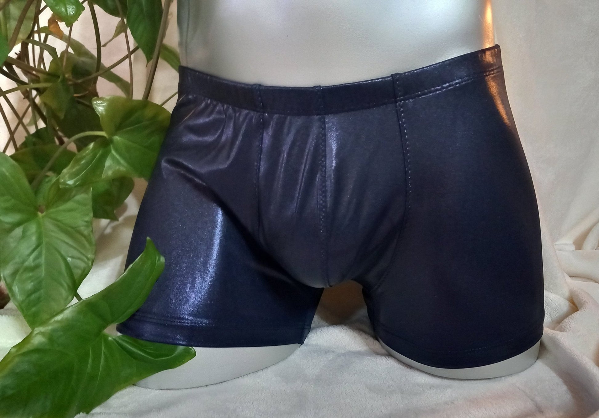 Tiefdunkles Metallic-Blau trifft auf körpernahe Eleganz: Diese eng anliegende Bade-Boxershorts aus elastischem Lycra besticht durch ihre schimmernde Oberfläche und den sportlich-maskulinen Look. Der edle Blauton setzt auf subtile Erotik – ideal für Männer, die Stilbewusstsein und Verführungskraft gern miteinander verbinden.