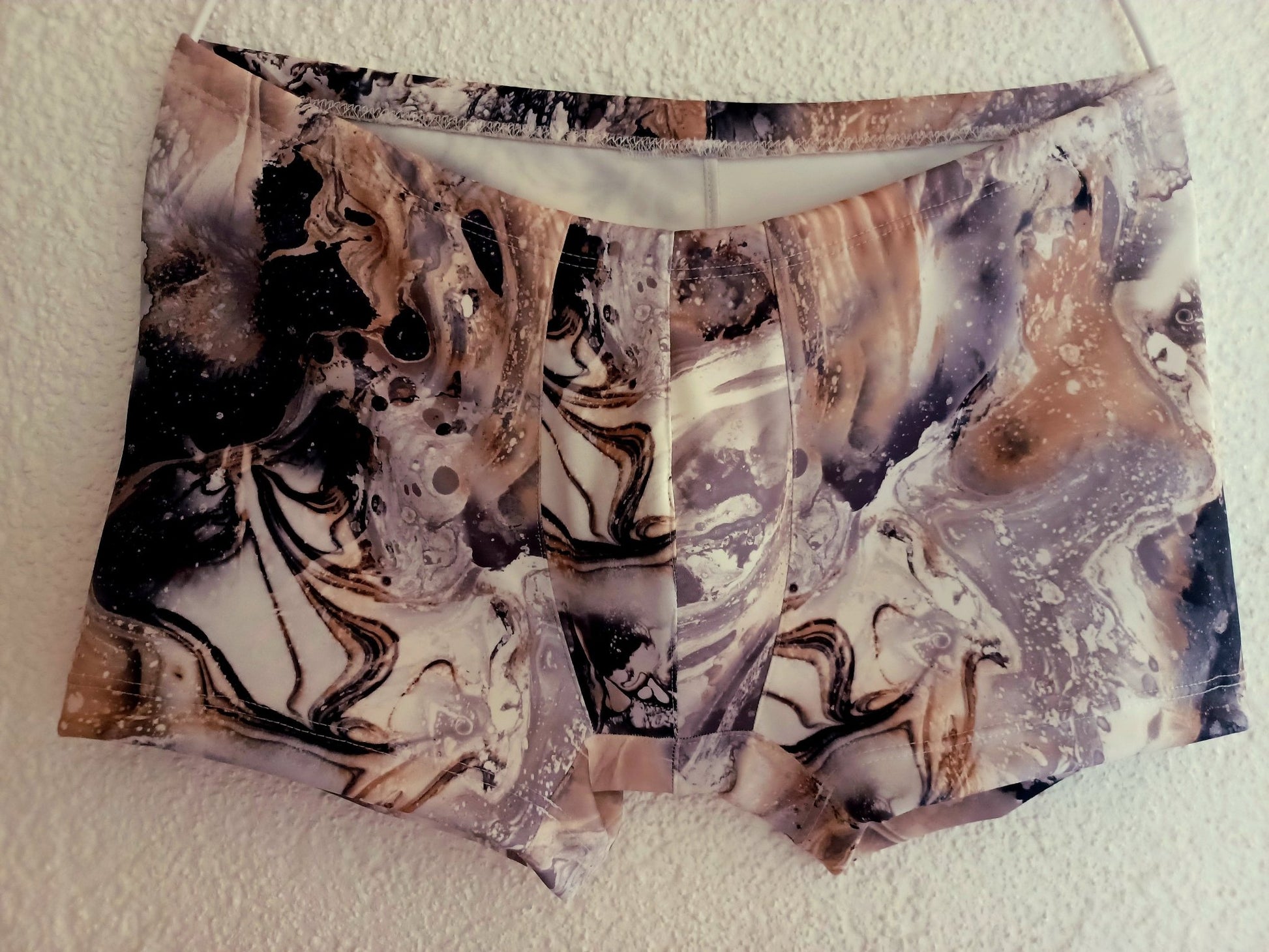 Boxershorts Badehose elastisch Scuba Jersey in Marmor-Optik